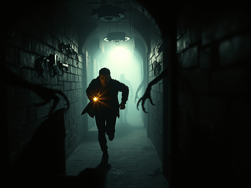 Elvander Gray sprinted through the labyrinthine corridors of the Tower, his pulse hammering in his ears. The surrounding walls shimmered faintly, alive with alien glyphs that twisted and flowed like mercury. The air was suffocating, thick with a damp chill that pressed against his lungs. His built-in torch cast a faltering beam ahead, its light barely enough to fend off the crushing darkness that loomed like a predator waiting to pounce.