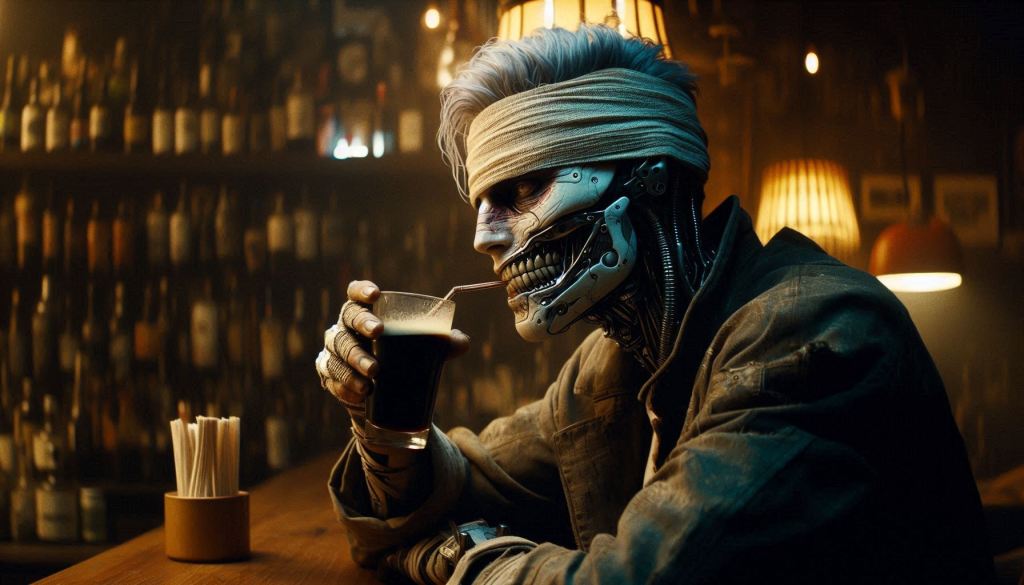 Baron Samedi sat at a rundown bar in New Orleans, the air thick with the scent of stale bourbon and desperation. The low hum of a jukebox played a mournful blues tune, blending with the occasional clink of glasses and muttered conversations from the few living patrons scattered in the shadows. Samedi’s skeletal fingers traced idle patterns on the bar’s worn surface, his top hat tilted just enough to obscure his hollow eyes from view.