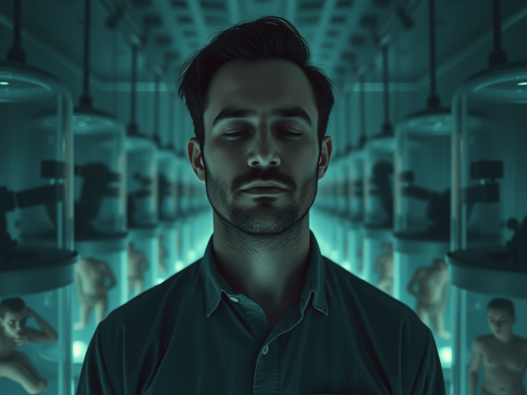 Inside, the Dreamfloor hummed. The tanks stretched in geometric stillness, like some occult battery grid. Each held a floater, a human body suspended in fluid, eyes flickering behind closed lids.
